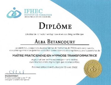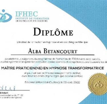 Pour ce faire, j’ai fait beaucoup de lectures profondes et nourrissantes, j’ai suivi une formation de l’écoute du cœur et de l’esprit pour vivre en cohérence et en harmonie avec moi-même. J’ai par la suite continué mon cheminement avec un cours de PNL (Programmation Neuro-Linguistique) suivi d’une formation de maitre praticienne en hypnose transformatrice afin d’avoir les compétences et la capacité de vous guider et de vous aider pour atteindre vos objectifs personnels.
